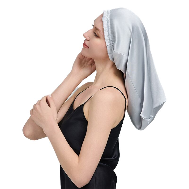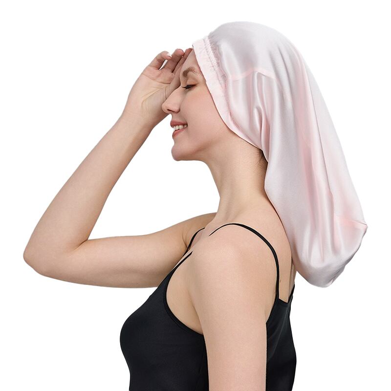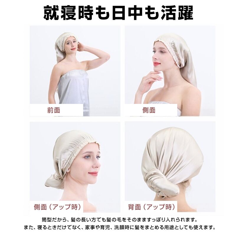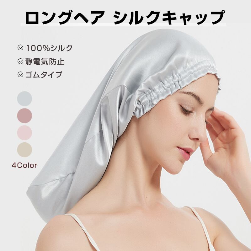 シルク生地を使用した、髪をやさしく包み込むロングヘア用ナイトキャップです。
