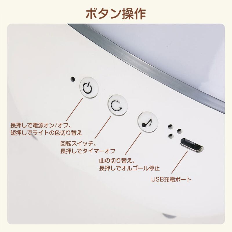 人気アニメ曲やバースデーソングが流れる内蔵オルゴール付き。