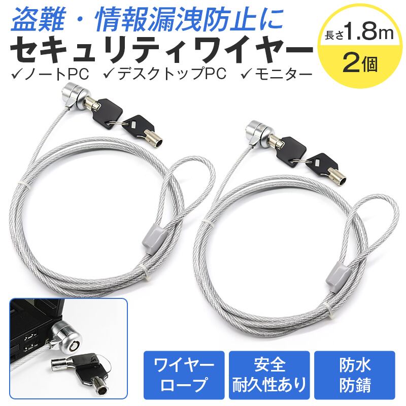 セキュリティワイヤー 2個 1.8m 鍵 ロック PC ノートパソコン ワイヤーロック 盗難防止 情報漏洩防止 7×4mm スロット対応 180cm 頑丈 オフィス カフェ 簡単設置 | tsmobile