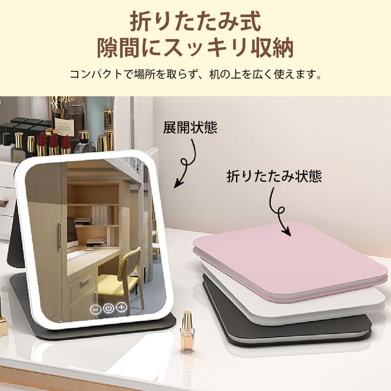 メイクはもちろん、スキンケアや身だしなみチェックに、折りたたみ式LEDメイクミラー!