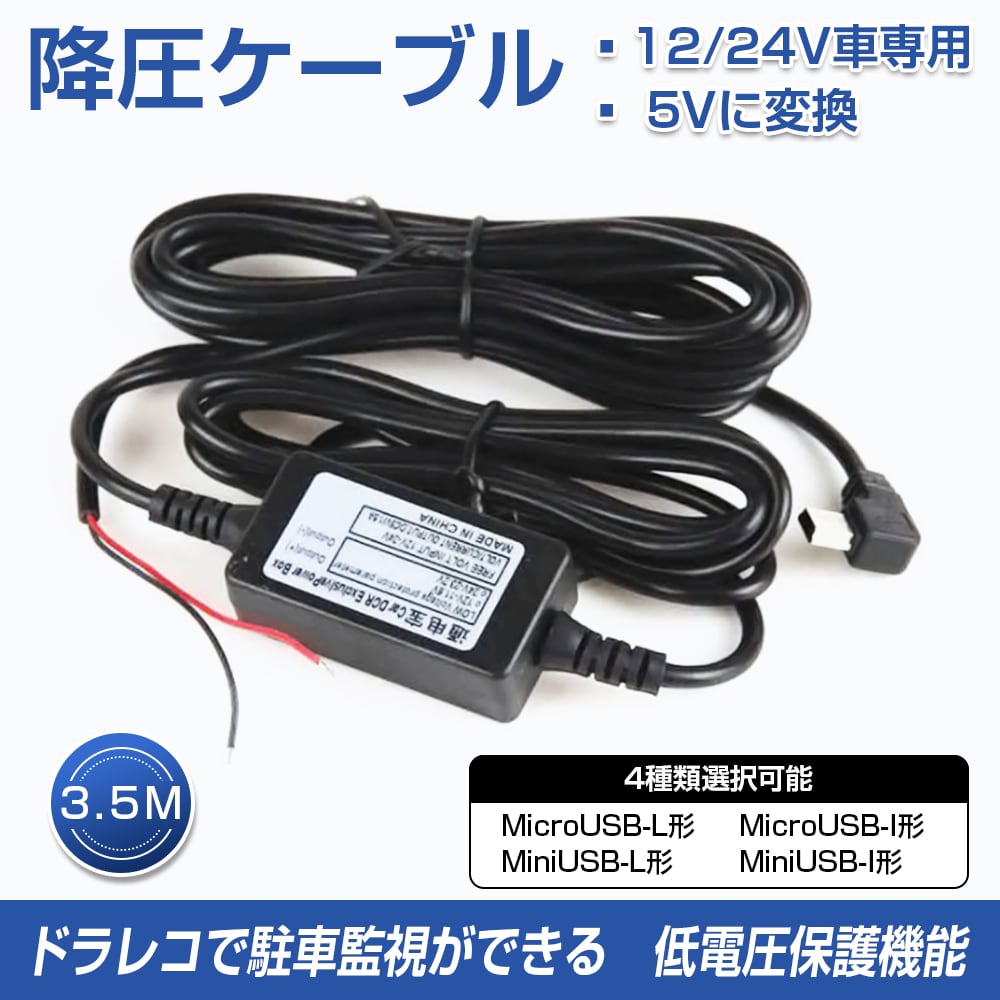 ドライブレコーダー 常時電源ケーブル 車 ドラレコ 降圧ケーブル 電源ケーブル MicroUSB マイクロUSB MiniUSB ミニUSB 自動車 8V 12V 24V対応 駐車監視用 3.5m | tsmobile