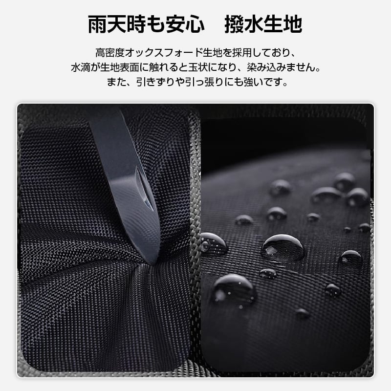 高密度で防水+撥水性に優れた生地を採用し、雨の日も安心。