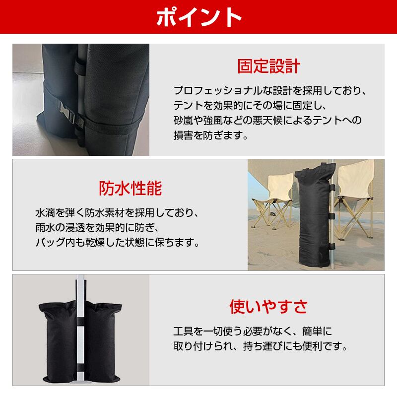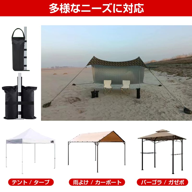 ペグが使えないアスファルトや砂浜の強風対策、転倒防止に最適です。