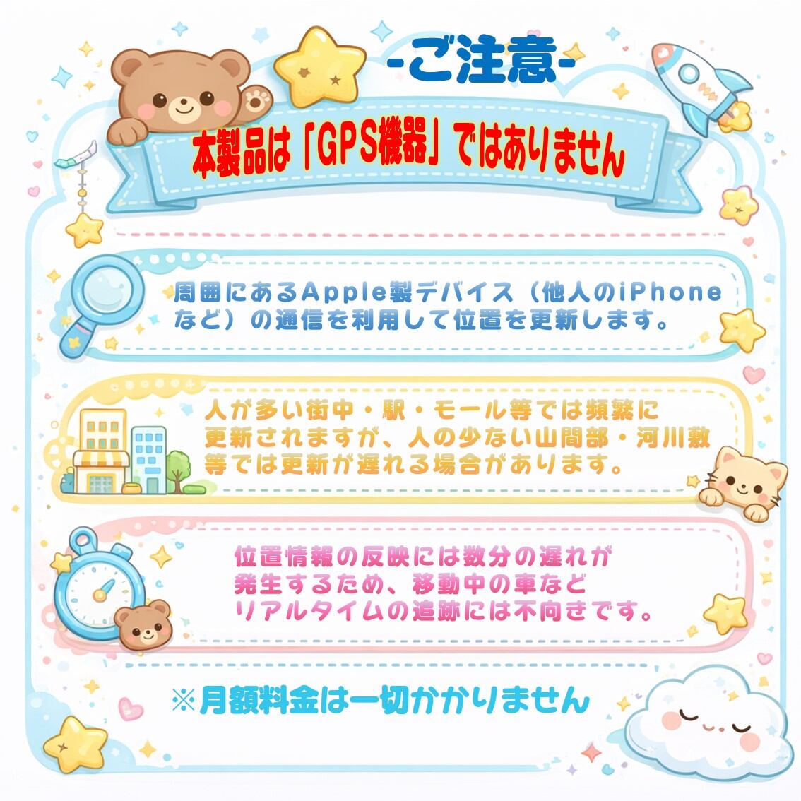 【重要】本製品はGPS機器ではありません。対象の安全を保証するものではありません。タグ本体は非防水です。