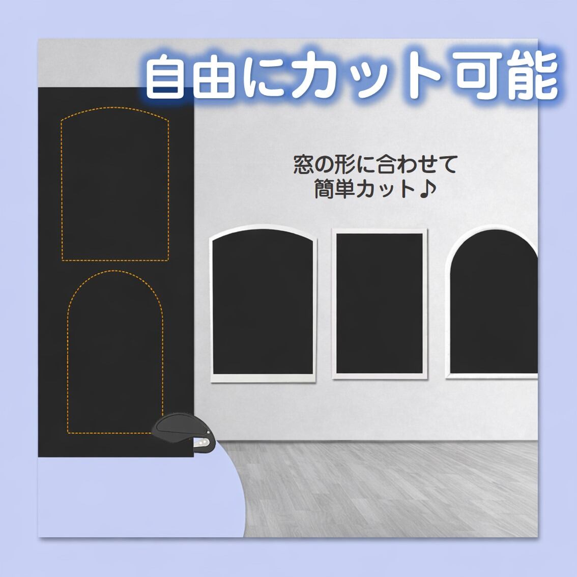 必要な分だけ自由にカットでき、窓の形に合わせてぴったり取り付け可能です。
