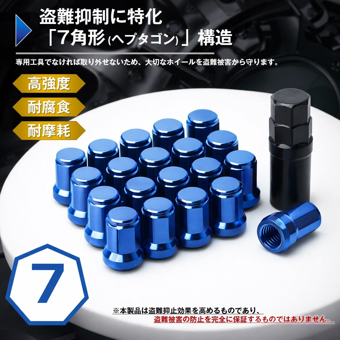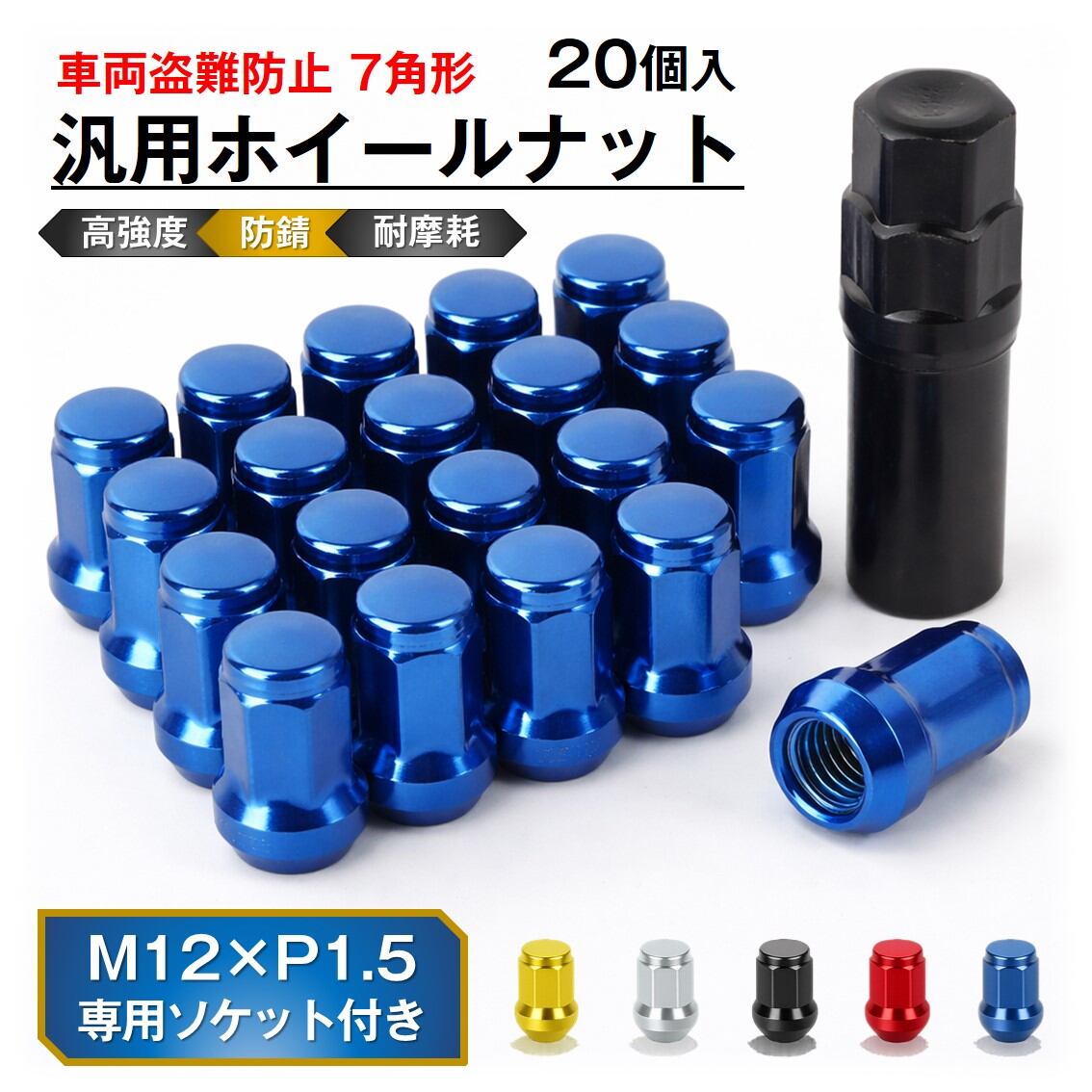 ホイールナット 20個セット 7角 M12 P1.5 60度テーパー 盗難防止 車 ロックナット 簡単 専用ソケット付き 防錆 高強度 高耐久 スチール 汎用 ドレスアップ 防犯 | tsmobile