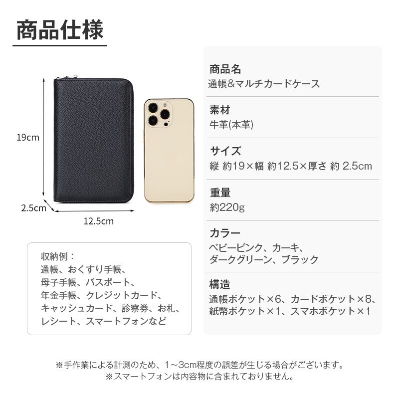 収納例:貴重品 通帳 印鑑 お薬手帳 母子手帳 パスポート 年金手帳 紙幣 現金 レシート スマートフォン 各種カード(クレカ / キャッシュ / 診察券) 等,