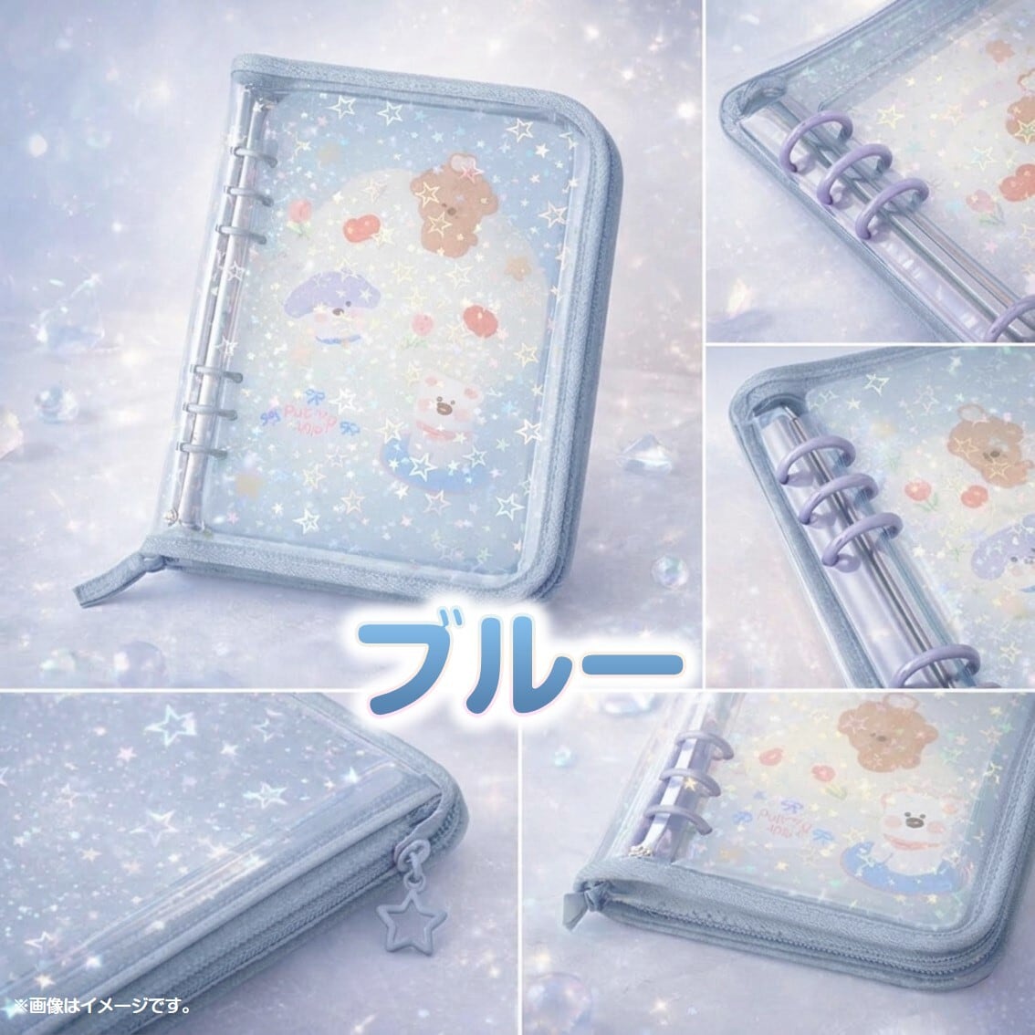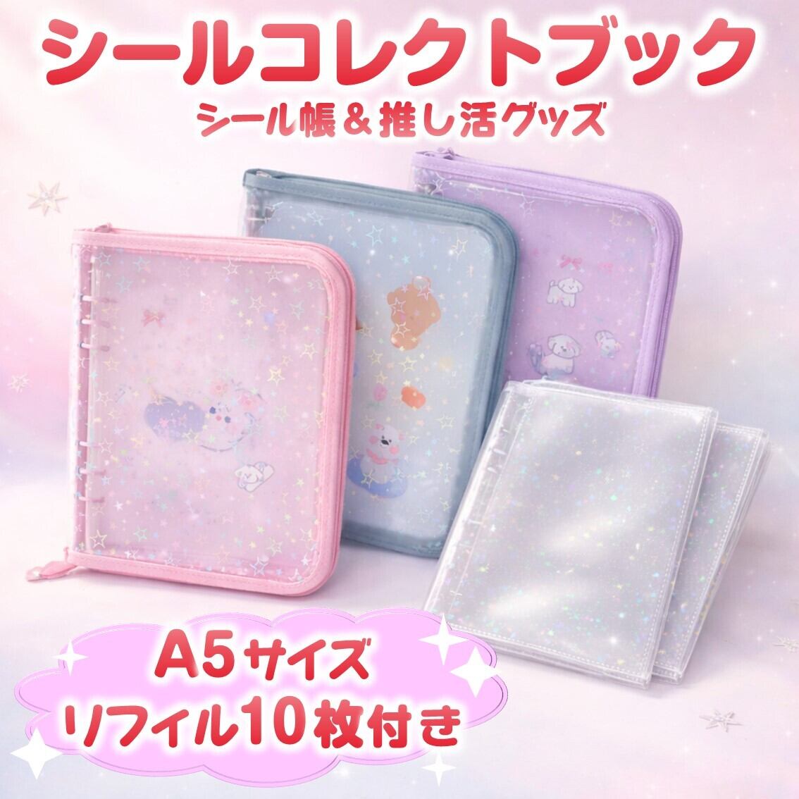 シールブック コレクトブック 韓国 可愛い A5 6穴 シール帳 バインダー 収納 ファスナー キラキラ ラメ 透明 リフィル付き ファイル トレカケース 推し活 オタ活