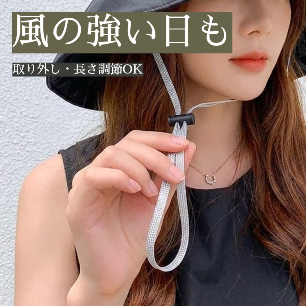 取り外しOKのあご紐付きで、向かい風でも帽子が飛ばされない。