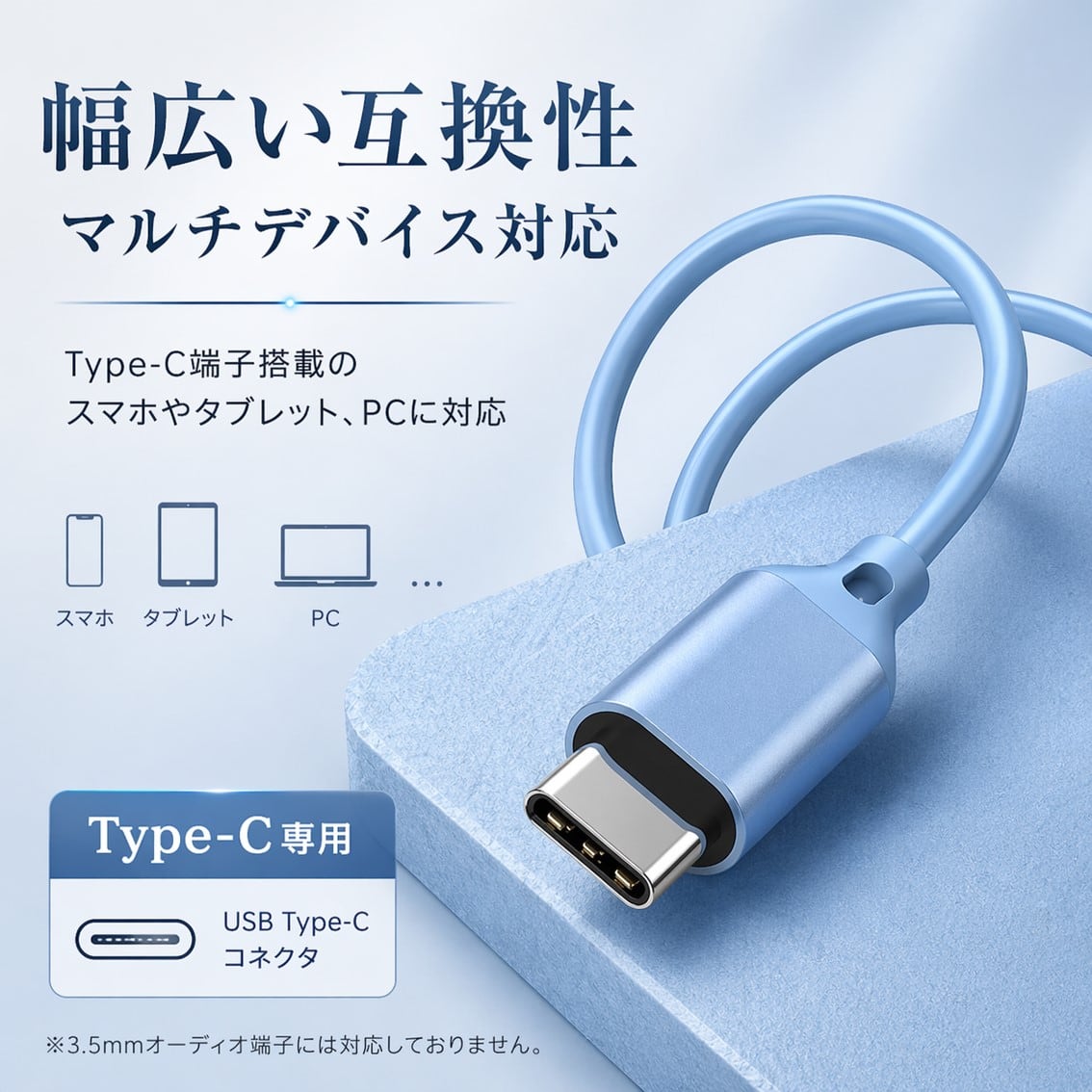 Type-Cポートのスマートフォンやタブレット、PCに挿すだけ。