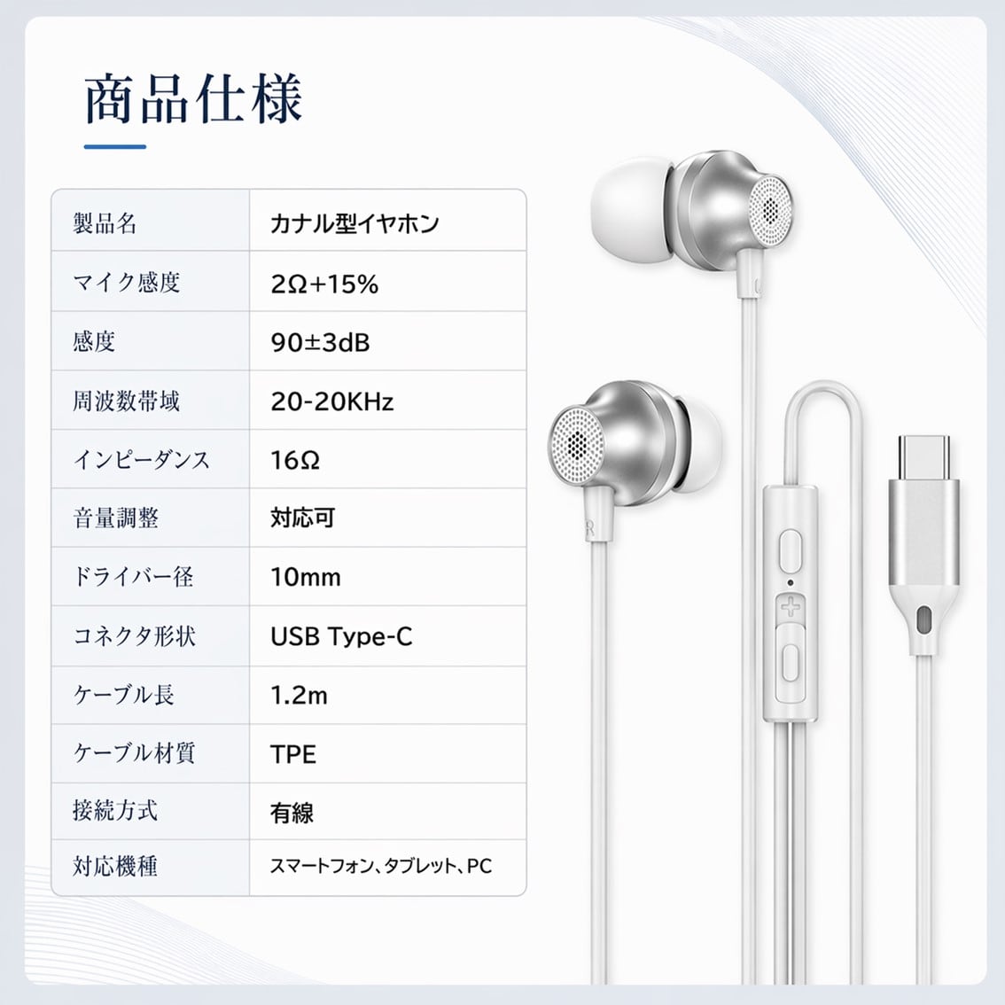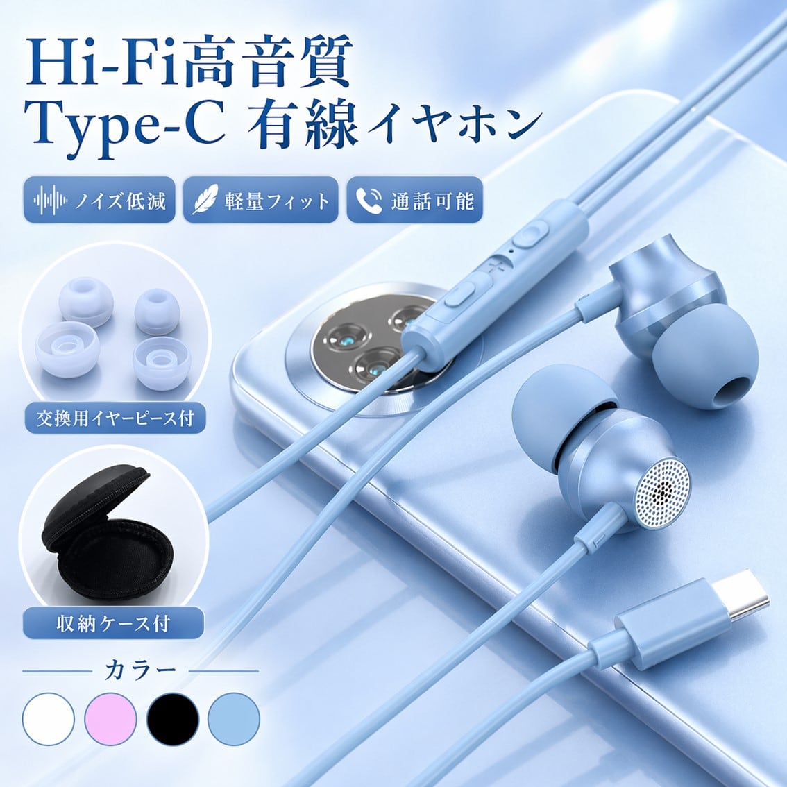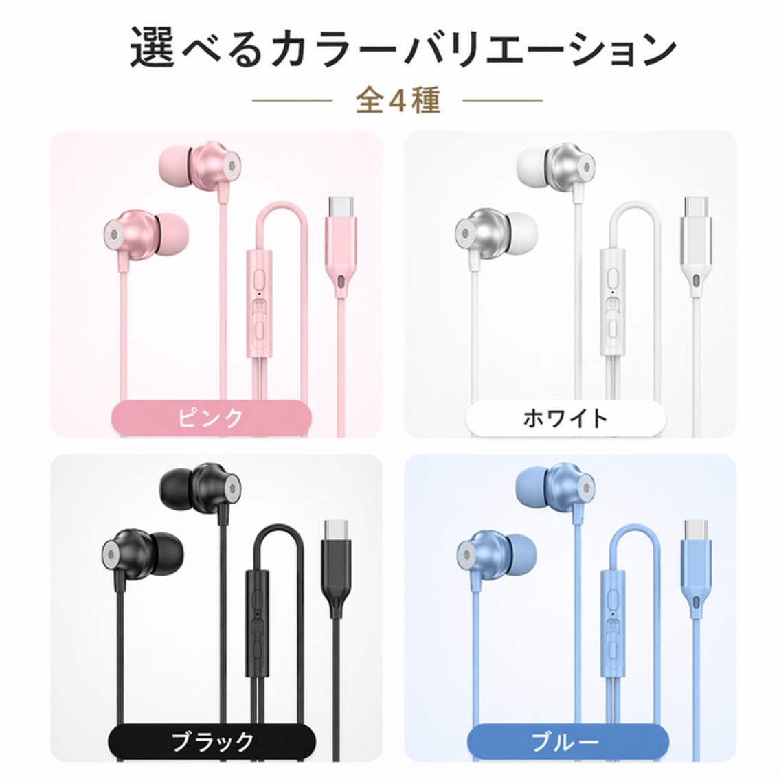 Type-C イヤホン 有線 カナル型 通話 マイク付き 音量調整 ハンズフリー スマホ PC パソコン タブレット 対応 ゲーム VC テレワーク 会議 軽量 高音質 おしゃれ