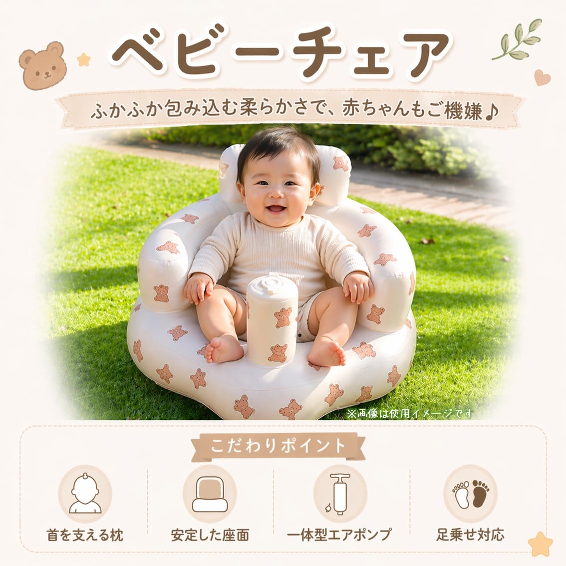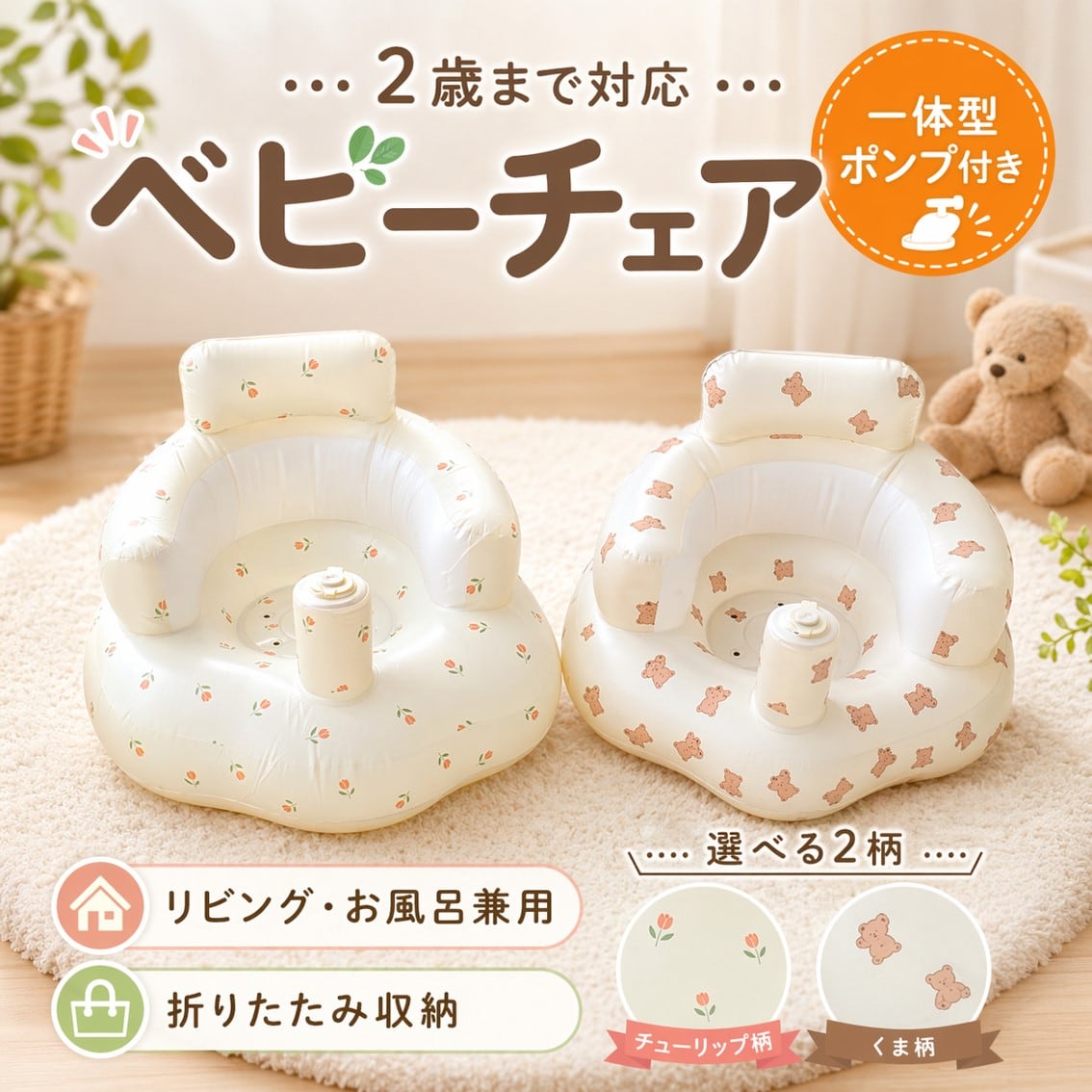ベビーチェア バスチェア 折りたたみ エアー 空気入れ ベビーソファ 赤ちゃん 離乳食 お風呂 お座り 練習 コンパクト 持ち運び 便利 出産祝い ギフト かわいい