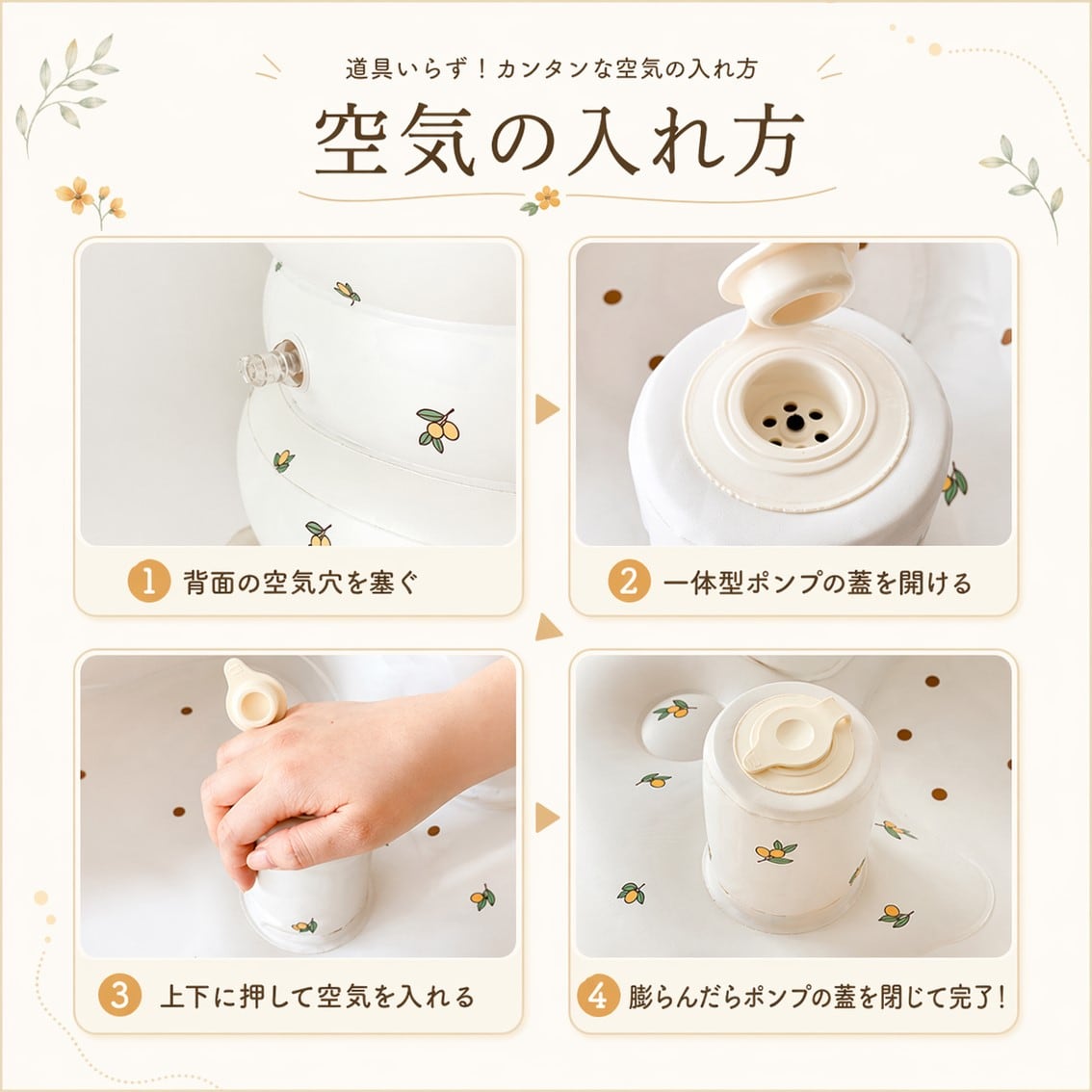 このベビーソファなら、市販の空気入れ不要。