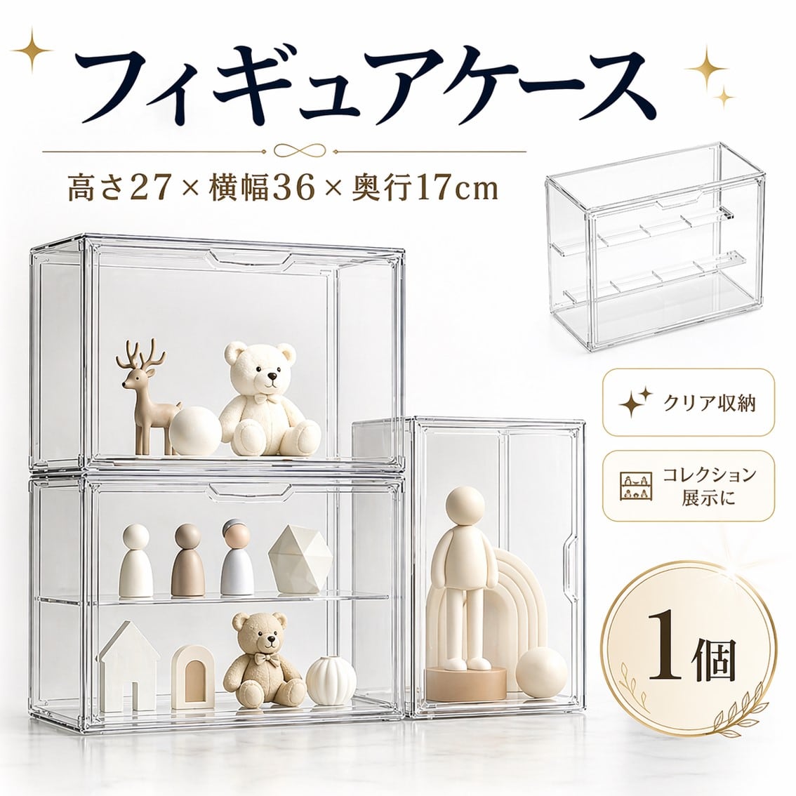 フィギュアケース コレクションケース 透明 防塵 組み立て式 ディスプレイケース 収納 箱 棚 扉付き 積み重ね可能 フィギュア ドール 模型 展示 アクスタ 推し活