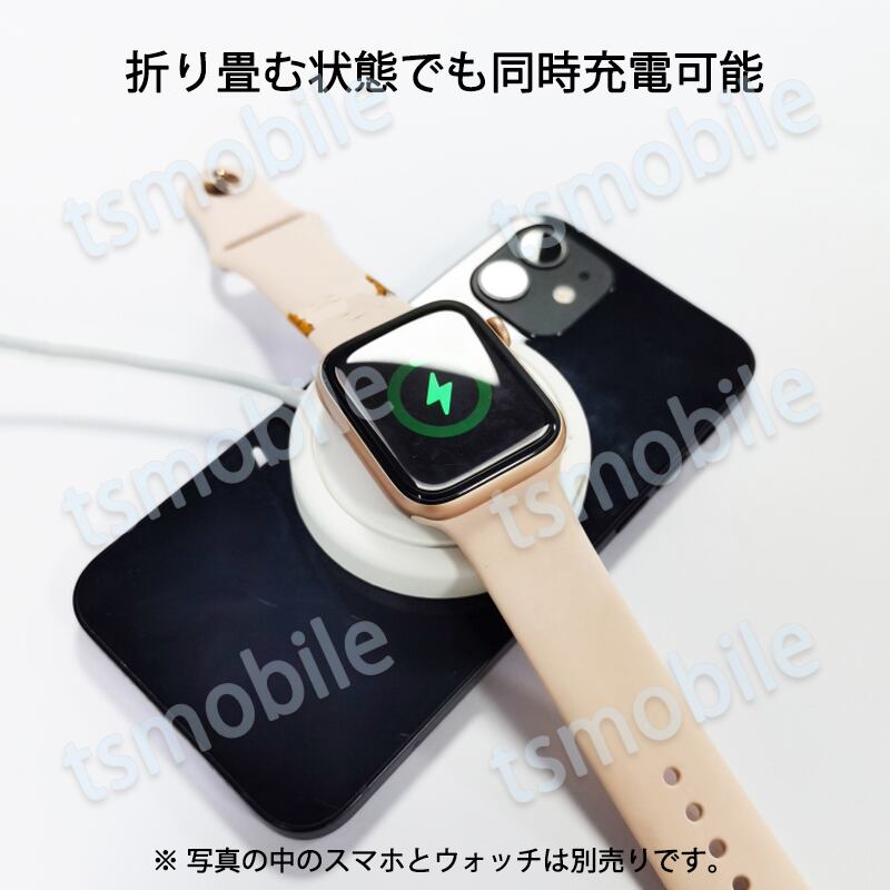 ワイヤレス充電器 2in1 MagSafe対応 usb端子 マグネット iphone12 12Pro Max 12mini iWatch同時充電 磁気吸着 急速充電器 最大15W | tsmobile