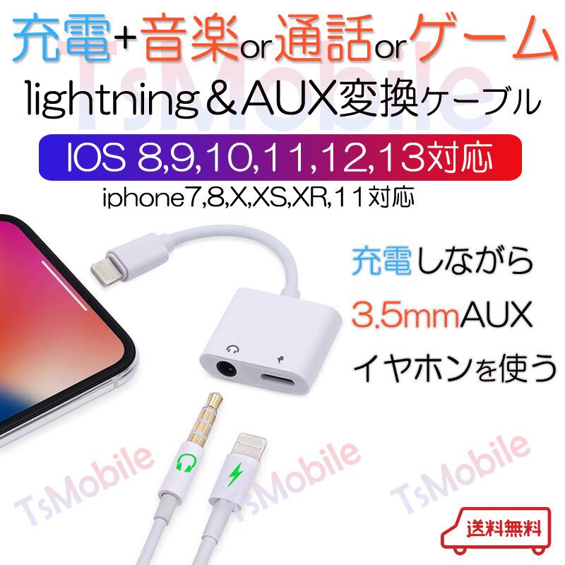 iPhone ライトニング3.5mmAUXオーデイオ充電 変換ケーブル lightning 音楽同時 充電器イヤホン変換アダプター iPhone11 pro Xs max/Xr/8plus/7plus対応 | tsmobile