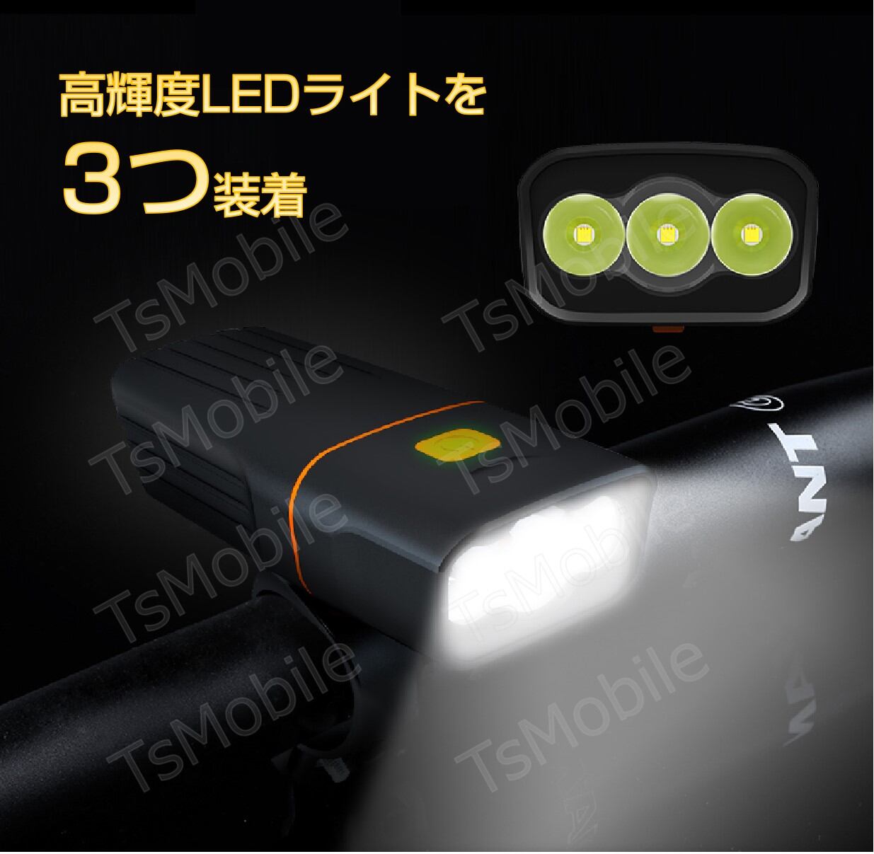 照度に自慢な自転車用LEDライトです。ホルダーから外せば懐中電灯としても使えます。