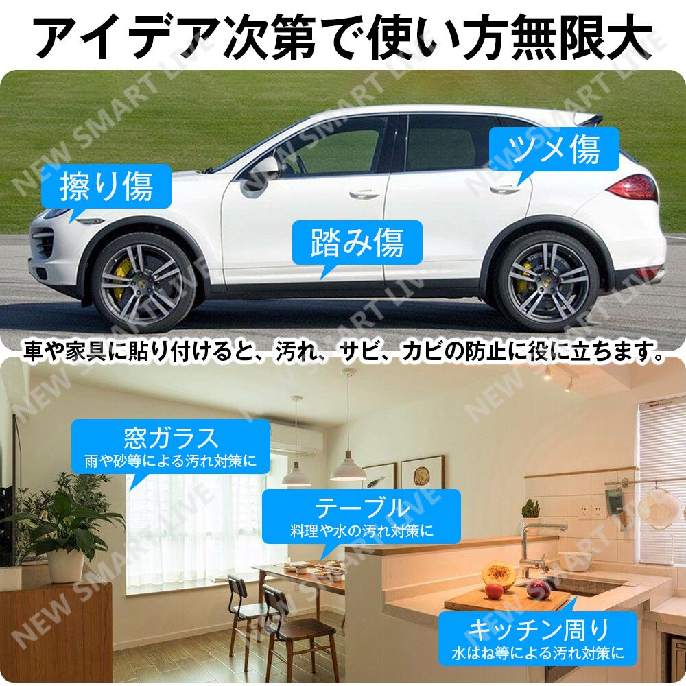 擦り傷が発生しやすい箇所にこの透明フィルムを貼り付けていれば、キズから愛車を守ることができます。