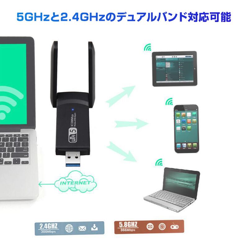 無線LAN子機 USB3.0 外付け LANアダプター lan端子1200Mbps ゲーミング WiFi5 中継機 デュアルバンド アンテナ 小型 2.4G 5G インターネット ドライバ不要 | tsmobile