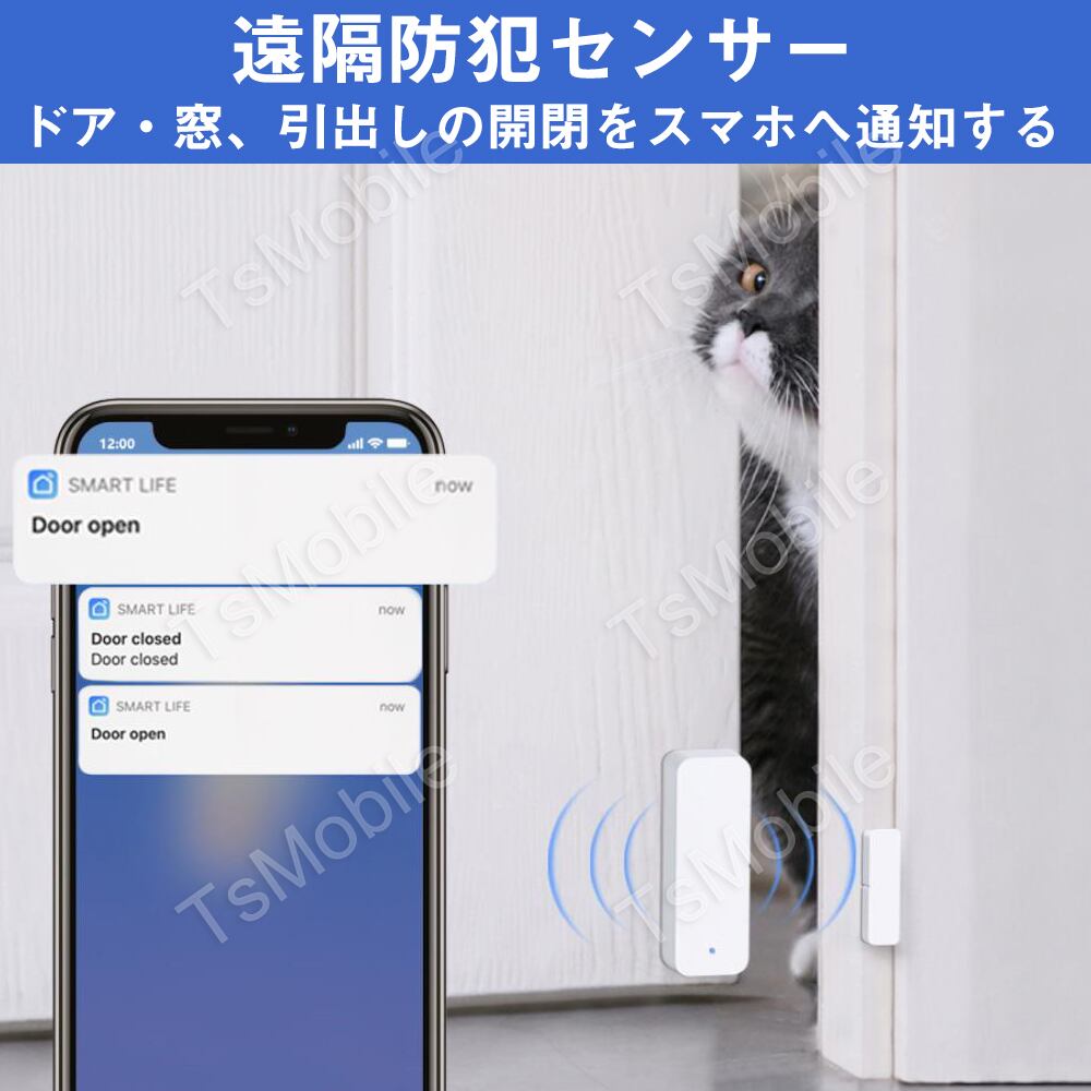 WIFIドアセンサー 開閉状態をスマホで確認 スマート窓センサー 防犯 扉 窓 電池式 セキュリティ アプリ連携可能 配線工事不要 テープで取付 Android iPhone IoT | tsmobile