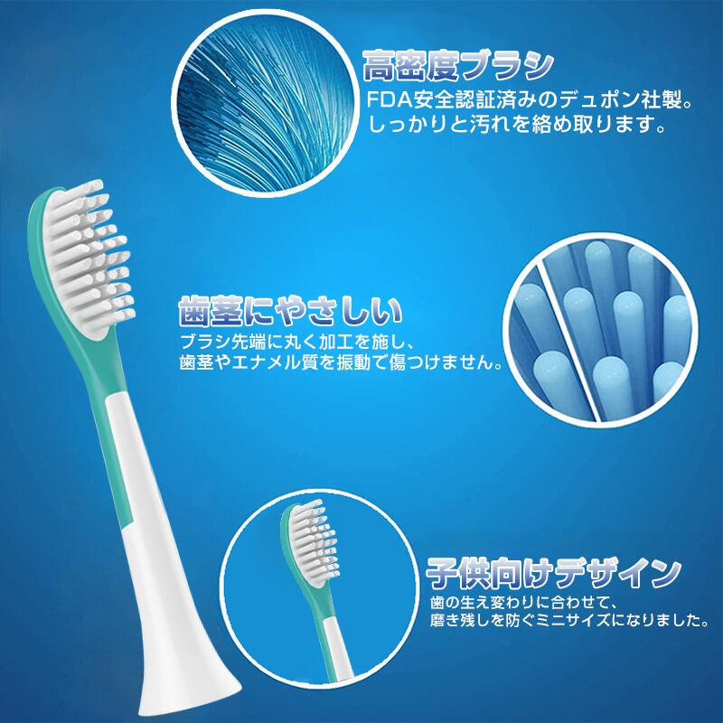 奥まで届いて仕上げ磨きにも使える!キッズミニ互換対応の替えブラシです。
