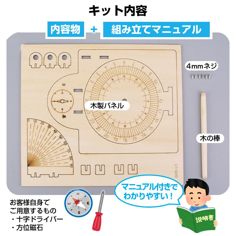 日時計の基本構造が分かる、組み立て簡単な工作キットです。