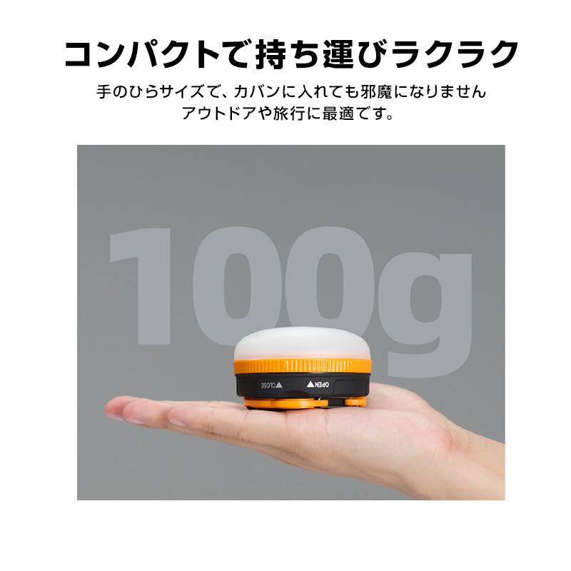 フック付きで、テントや木の枝などさまざまな場所に吊り下げられます。